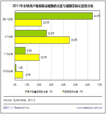 2011年全球64%移動(dòng)視頻只被觀(guān)看了2分鐘以?xún)?nèi)