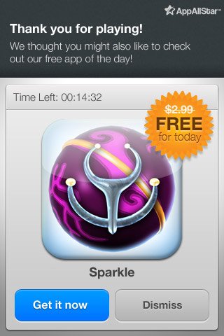怎樣有效的將應用貨幣化呢?簡單的說,我們首先需要判斷當前用戶群的客戶終身價值,然后通過一系列方法使該價值得到持續(xù)的提升;這些方法包括“應用內(nèi)”的普通廣告、產(chǎn)品體驗廣告、來自相同發(fā)布商的其他應用信息、相關(guān)增值產(chǎn)品與服務等。下圖所示的就是在應用中推銷另一款產(chǎn)品的典型案例。