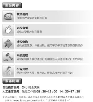 為及時響應納稅人的要求維護納稅人的權益,海南省國家稅務局于2003年開通12366納稅服務熱線,2008年5月12日正式成立12366納稅服務呼叫中心,在省國稅局設立熱線坐席,專門為納稅人解答涉稅難題。