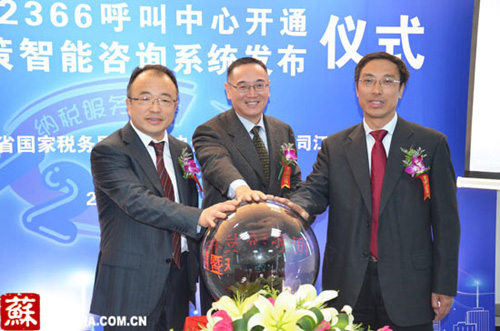 圖:4月12日上午,江蘇國稅12366呼叫中心在南京開通