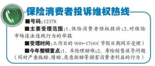 保監(jiān)部門(mén)表示,12378保險(xiǎn)消費(fèi)者投訴維權(quán)熱線開(kāi)通后,對(duì)消費(fèi)者反映的問(wèn)題推諉扯皮、敷衍塞責(zé)、不認(rèn)真解決并造成嚴(yán)重后果的,要追究有關(guān)人員的責(zé)任。對(duì)消費(fèi)者反映比較突出的問(wèn)題,要加強(qiáng)協(xié)調(diào),特事特辦、急事急辦,盡最大努力為消費(fèi)者排憂解難。