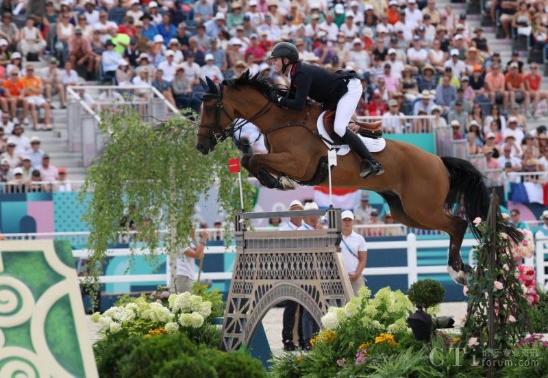 8月2日,英國隊(duì)選手查爾斯在比賽中。當(dāng)日,在巴黎奧運(yùn)會馬術(shù)團(tuán)體場地障礙大獎(jiǎng)賽決賽中,英國隊(duì)奪得金牌。新華社記者 楊磊 攝