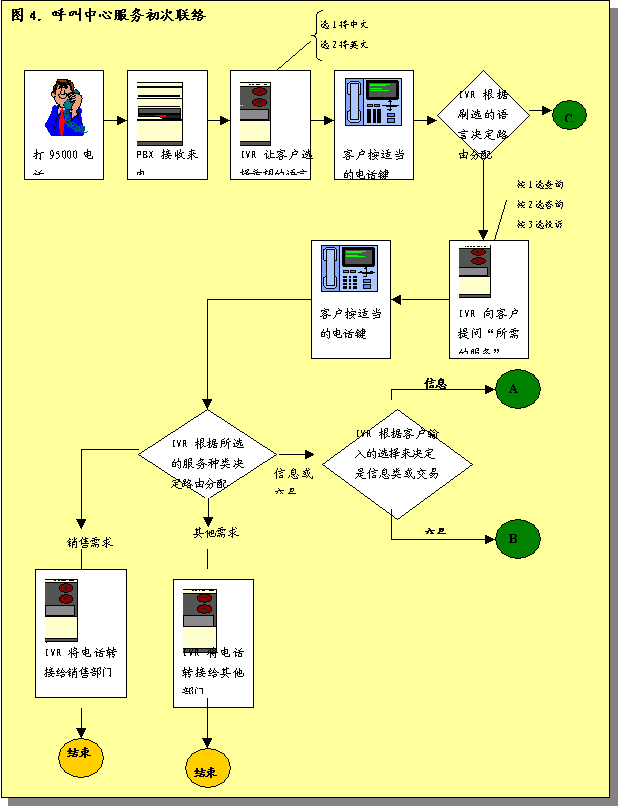 圖4詳細說明了呼叫中心服務(wù)初次處理呼叫的過程。根據(jù)圖標的內(nèi)容,將立即撥號呼叫者: