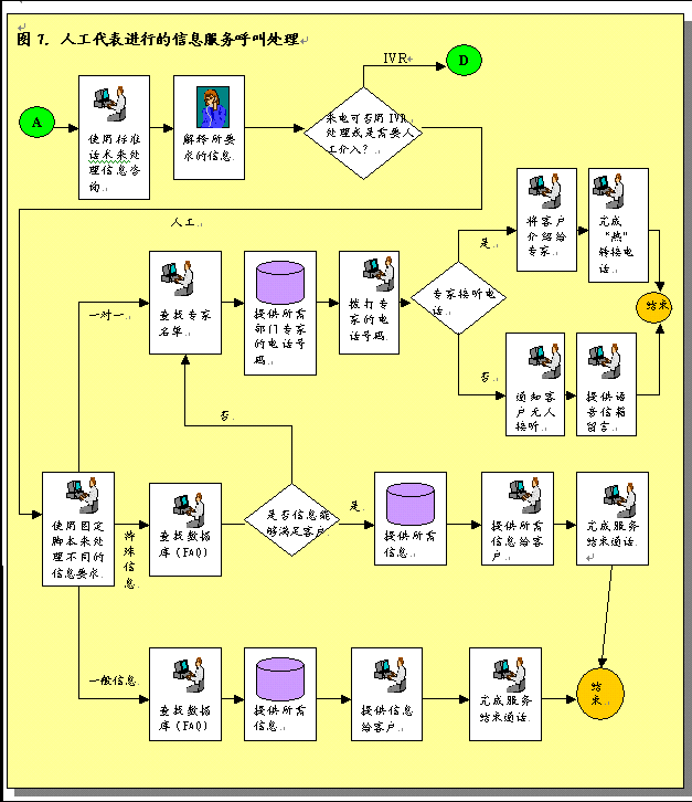 在上文提到的各種呼叫處理辦法都需要與提供服務(wù)的公司部門緊密配合和協(xié)作。這些部門將負責及時準確地為呼叫中心服務(wù)提供信息,滿足經(jīng)過呼叫中心或網(wǎng)絡(luò)初期處理的服務(wù)請求。
