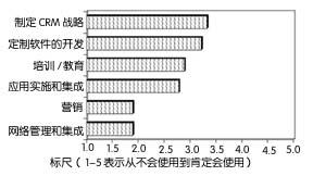 通常,通信提供商相對(duì)而言不愿意求助于專業(yè)服務(wù)公司來(lái)幫助其實(shí)施CRM解決方案。在1~5的標(biāo)尺中,只有積分為5的公司可能使用專業(yè)服務(wù)公司,分?jǐn)?shù)低于3.5的公司沒(méi)有一家會(huì)這么做,這表明通信提供商仍由內(nèi)部人員來(lái)實(shí)施多數(shù)功能。調(diào)查的分?jǐn)?shù)表明他們最可能與外部服務(wù)提供商合作制定戰(zhàn)略——定制軟件開發(fā)(3.33)和培訓(xùn)(3.22)。他們最不可能求助此類公司來(lái)從事網(wǎng)絡(luò)管理和集成(1.89)或營(yíng)銷(1.89)工作。圖3顯示的就是這些調(diào)查結(jié)果。