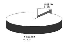 本次問卷調(diào)查共有2461個有效樣本,其中知道CRM的有220份,占8.33%,不知道的有2421份,占91.67%。這說明,從國外引入到現(xiàn)在,CRM在我國還遠未普及。
