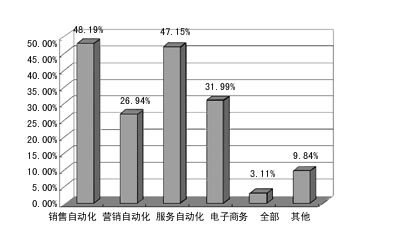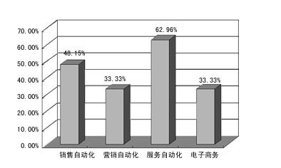在已實施CRM企業(yè)的情況中,實施模塊最多的是服務(wù)自動化,其次是銷售自動化;但那些沒用CRM的企業(yè),準備先上銷售自動化模塊的企業(yè)最多,而服務(wù)自動化其次。對于CRM軟件市場來說,銷售自動化和服務(wù)自動化仍是主流。