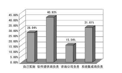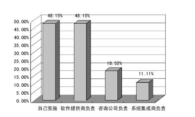 在用戶如何實施CRM系統(tǒng)的調(diào)查中,已應(yīng)用CRM的單位一般都是由自己或軟件提供商負責,而沒用CRM的企業(yè)則大多期望能由軟件提供商負責。這說明,用戶實施CRM的主體意識還不夠強。