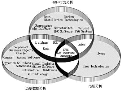 這一市場的供應(yīng)商目前主要分為兩大陣營:一類著眼于客戶行為傾向分析;另一類著眼于對客戶價值進行評估。前者主要注重了解客戶的喜好,而后者則著重關(guān)注客戶對企業(yè)的潛在收益。