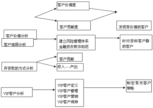 下面是一個(gè)以銀行業(yè)為例CRM中BI分析的一個(gè)簡(jiǎn)單的應(yīng)用方式。