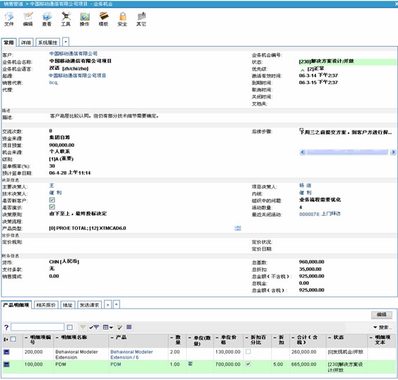 具體來講,企業(yè)的銷售人員通過VamCRM定義的銷售管道實(shí)現(xiàn)對銷售工作的流程化跟進(jìn)和管理;玖鞒淌牵菏紫蠕N售人員通過各種途徑獲得客戶信息,與之溝通聯(lián)系,有業(yè)務(wù)進(jìn)一步發(fā)展的可能后形成相應(yīng)的銷售線索,便開始切入銷售管道。然后,通過相關(guān)業(yè)務(wù)活動與客戶進(jìn)行接觸,支持業(yè)務(wù)的不斷發(fā)展,隨后,形成業(yè)務(wù)機(jī)會。若該項(xiàng)業(yè)務(wù)進(jìn)入實(shí)質(zhì)性的需求分析及合同的前期談判階段,即升級為系統(tǒng)的報價階段,可以對客戶的需求進(jìn)行報價、出具解決方案。接著,開展一系列商務(wù)公關(guān)活動,以雙方都可接受的實(shí)現(xiàn)方式簽訂合同,即在系統(tǒng)里形成銷售訂單。最終促進(jìn)形成發(fā)貨單,進(jìn)入實(shí)施、合同執(zhí)行、收款等相關(guān)后續(xù)的環(huán)節(jié)。與此同時,所有與現(xiàn)實(shí)中同客戶合約相關(guān)的信息都可以以統(tǒng)一的形式在系統(tǒng)中存儲,并且可以在獨(dú)立銷售階段間輕松遞進(jìn)轉(zhuǎn)換,有效提高系統(tǒng)的易用性和信息統(tǒng)一的關(guān)聯(lián)程度。每一個銷售階段都隱含著不同的側(cè)重目標(biāo),從線索挖掘、銷售過程追蹤、直至交易達(dá)成,企業(yè)可以對銷售過程進(jìn)行全面過程化管理,并且各個流程之間信息高度關(guān)聯(lián)和集成統(tǒng)一。同時,VamCRM融合了經(jīng)眾多企業(yè)多年實(shí)踐證明非常有效的MEDDIC銷售方法,不但能夠使銷售流程更加順暢,更能夠幫助企業(yè)深度把握客戶需求,掌握客戶購買習(xí)慣,明顯提升銷售業(yè)績。