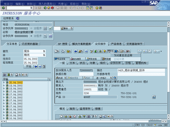 客戶服務(wù)功能包括記錄抱怨相關(guān)的事件信息或錯誤描述概況。資源規(guī)劃工具允許用戶察看事件相關(guān)的員工和資源的可用性。現(xiàn)場服務(wù)功能可以通過與可以使用WAP的設(shè)備、Palm、Pilot、PAQ