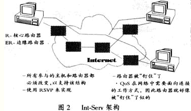 在廣域網(wǎng)上,IETF(Internet Engineering Task Force)定義了兩種IP QoS結(jié)構(gòu)——綜合業(yè)務結(jié)構(gòu)(Int-Serv