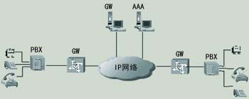 對于大多數的企業(yè)用戶,都擁有自己的用戶交換機PBX。在進行IP電話網的建設中,這些PBX將被保留,繼續(xù)承擔起用戶接入的功能。而這些PBX之間的中繼連接都將通過IP骨干網來完成。這樣,既可以節(jié)約價格不菲的長途中繼租用費,也避免了大規(guī)模的改造所帶來的浪費。