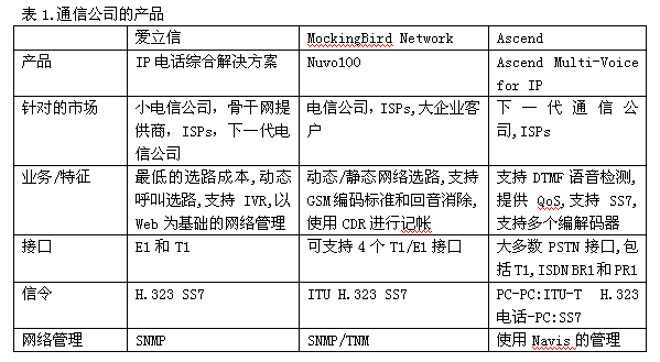 許多公司發(fā)布了IP電話產品,如表1所示。