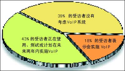 該調(diào)查收集了全球254名高級(jí)管理人員對(duì)未來(lái)企業(yè)網(wǎng)絡(luò)的意見和看法。其中,43%的受訪者表示,他們正在使用、測(cè)試或計(jì)劃在未來(lái)兩年內(nèi)實(shí)施VoIP;另外 18% 的受訪者表示,從長(zhǎng)遠(yuǎn)的角度來(lái)講,他們會(huì)實(shí)施 VoIP。市場(chǎng)預(yù)測(cè)也顯示相同的樂(lè)觀前景。研究機(jī)構(gòu)Gartner Dataquest預(yù)期到2008年,公用電話交換網(wǎng) (PSTN) 的零售語(yǔ)音收入將輕微下跌,而VoIP的零售收入則上升 38.6%。