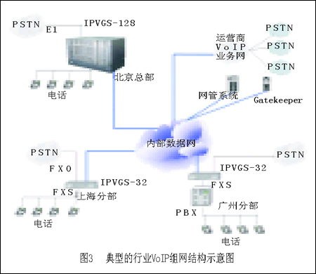 我國(guó)現(xiàn)有很多擁有自己專(zhuān)網(wǎng)的行業(yè),比如金融、能源和一些政府機(jī)構(gòu),它們正是通過(guò)這樣的方案來(lái)實(shí)現(xiàn)內(nèi)部通話的。這些行業(yè)目前也正是中國(guó)VoIP市場(chǎng)的主力,由于行業(yè)用戶(hù)的規(guī)模很大,目前中國(guó)的很多行業(yè)實(shí)際上都有一套運(yùn)營(yíng)級(jí)的VoIP網(wǎng)絡(luò)。圖3是一個(gè)典型的行業(yè)VoIP組網(wǎng)結(jié)構(gòu)圖。