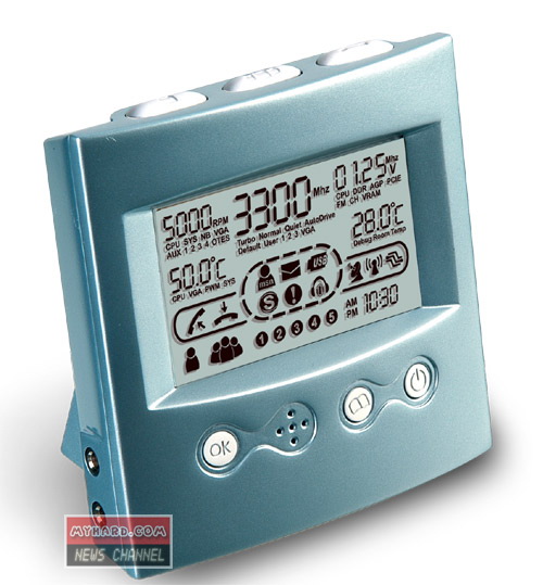 這個裝置,其實(shí)是一項(xiàng)早期工具的衍生產(chǎn)品。早在2004年,這個具有獨(dú)立顯示屏的小東西被開發(fā)出來,用以控制電腦的超頻設(shè)定并監(jiān)控系統(tǒng)的效能。現(xiàn)在這個在下周起于各大通路都買得到的新機(jī)種已納入Skype話務(wù)管理功能,使用者可直接把頭戴式耳機(jī)接到這個小時鐘上,one-touch輕輕一按,便可立即進(jìn)行接通電話、速簡撥號及電話會議。