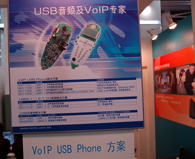 而松瀚科技有限公司也展示了自己的基于SN1121系列的VOIP方案。并把USB功能加入到VOIP電話中。