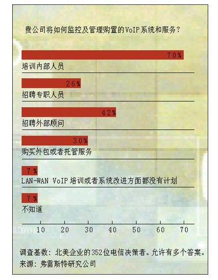 知道電話用戶的撥打習(xí)慣對(duì)于確;贗P的通話音質(zhì)清晰、不中斷起到了重要作用。Korsuth問(wèn): “人們使用電話的時(shí)間有多長(zhǎng)?他們需要多少語(yǔ)音郵件?因?yàn)檎Z(yǔ)音是另一種IP數(shù)據(jù)包,所以如果許多學(xué)生下載MP3文件或者進(jìn)行對(duì)等連接而導(dǎo)致網(wǎng)絡(luò)擁塞,你就得限制流量速率!