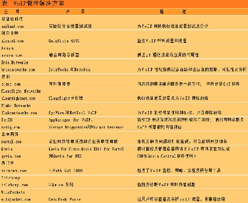 表 VoIP管理解決方案(點(diǎn)擊小圖看大圖)