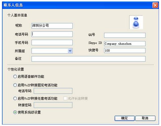 添加深圳側(cè)的 Skype為聯(lián)系人,并為其設(shè)置快捷號,假設(shè)為100