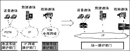數(shù)據(jù)、語音和視頻是三種主要通信手段。與數(shù)據(jù)通信網(wǎng)絡和視頻通信系統(tǒng)的發(fā)展趨勢一脈相承,VoIP建設是對傳統(tǒng)語音通信系統(tǒng)的IP化改造。