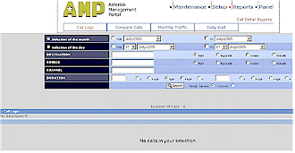 在圖6所示的系統(tǒng)狀態(tài)頁面中,大家可看到有“”Reboot和“Shutdown”按鈕排列在下部,在你運行AAH的機(jī)器離控制計算機(jī)很遠(yuǎn)的時候這個功能很管用。報告標(biāo)簽(圖7)看上去非常簡單,只有四個類別:呼叫記錄、比較記錄、月流量和日負(fù)荷,在這些報告中有些內(nèi)容顯示不全,但系統(tǒng)又不讓你來調(diào)整數(shù)據(jù)的寬度范圍。