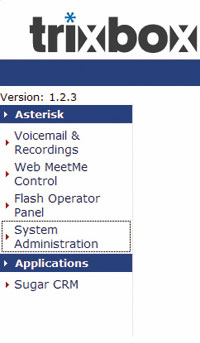 完成這些工作之后,用戶即可進(jìn)入Web界面進(jìn)行后期配置。使用Web瀏覽器訪問Trixbox系統(tǒng),首頁是幾個主要組件管理界面的入口,如圖3所示,其中“System