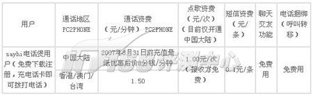 VoIP的重點(diǎn)是在于語(yǔ)音質(zhì)量、通話費(fèi)用上,從測(cè)試結(jié)果來(lái)看,基本上各個(gè)軟件都能得到較好的通話質(zhì)量,個(gè)人感覺質(zhì)量最好的是Skype。在通話費(fèi)用方面,酷寶、RedVip、SayHi和UUCall的費(fèi)用一樣,都是0.12元/分鐘,但SayHi和UUCall通過優(yōu)惠措施把價(jià)格降得很低,非常的實(shí)惠。