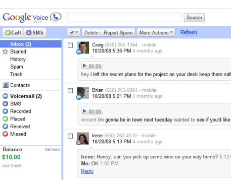 Google Voice的界面