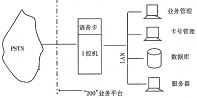 由于大多數(shù)“200”業(yè)務(wù)平臺采用的是上控機(jī)及語音卡系統(tǒng)(見圖1所示),由語音卡完成語音提示及交換處理,整體話務(wù)處理能力差,不太適合大中城市使用;另外其語音提示是經(jīng)過語音卡壓縮記錄在硬盤上,放音時(shí)經(jīng)讀盤、解壓恢復(fù)成語音信號,處理速度慢,交換占用總線資源,在話務(wù)量大時(shí),易出現(xiàn)阻塞現(xiàn)象,并將影響現(xiàn)有的“200”業(yè)務(wù)。