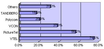 至于終端的品牌,賽迪顧問在對(duì)用戶、渠道經(jīng)銷商的調(diào)查中,發(fā)現(xiàn)有一半以上的被調(diào)查者知道VTEL和PictureTel,另外一個(gè)比較知名的品牌是VCON,如圖3所示。