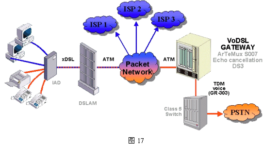 NMS提供整套ATM解決方案,下圖17給出了一個(gè)Voice Over ATM/xDSL的應(yīng)用方案。