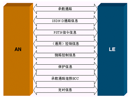 PSTN:規(guī)定了AN如何獲取PSTN用戶線(模擬和數(shù)字)狀態(tài),以及如何向LE傳遞,以便由LE最終完成呼叫控制。其中可能包括特定呼叫協(xié)議的轉(zhuǎn)換和翻譯以滿足核心網(wǎng)中的LE信令標準。