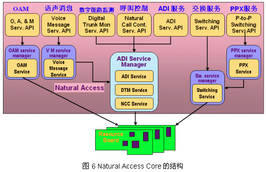 圖6顯示了Natural Access Core的組織結(jié)構(gòu)。它由四部分構(gòu)成:核心(Core)、服務(wù)(Services)、服務(wù)管理器(Service Managers)、服務(wù)守護程序(Natural Access Server:ctdaemon)。