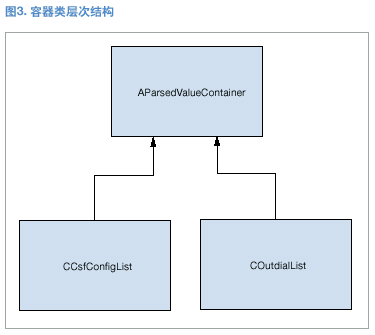 AparsedValueContainer類沒有數(shù)據(jù)和方法。它僅用于配合收集程序類的運(yùn)行。(見圖3。)抽象收集程序類純虛擬功能CollectValues()的第二個影響因素是容器,當(dāng)在具體收集程序類實(shí)施中定義了容器時,必須使用通用的基礎(chǔ)類。所以在真正使用容器之前,必須在每個具體的收集程序類中進(jìn)行向下類型轉(zhuǎn)換。
