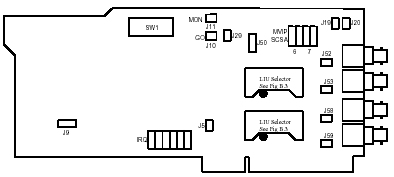 所有配有BNC連接頭的板卡在E1 75歐姆點(diǎn)都有LIU選擇器,用戶不能夠移動這些選擇器。