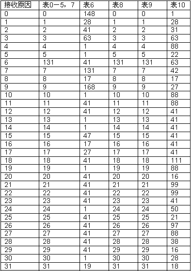 本節(jié)詳細描述了10個預配置的接受拆線原因到內部標識的映射表。當前表0-5和7都是相同的。表6、8、9和10不同。