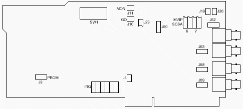 為交叉連接的數(shù)據(jù)流6和數(shù)據(jù)流7選擇數(shù)據(jù)的來(lái)源,數(shù)據(jù)可以來(lái)源于MVIP總線或者SCbus的子卡。正常的情況下,SCSA位置專用于安裝SCbus子卡,MVIP位置專用于安裝MVIP。
